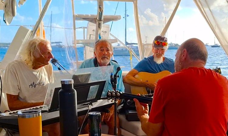 I am bringing this up because of another AI program. A few weeks ago, we had a musical jam session with a couple of other cruisers on SWEET CAROLINE and KALUNAMOO. We got together with Tim on VAHANA, Joe on ADIONA and Rene on THIRD TAC. We are all non-professional musicians and just like to make “pleasant noise” together. Sometime all in the same key. I am always on the lookout for other cruisers to jam with and willing to lug my keyboard around to other boats.