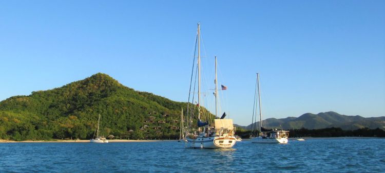 In any case we see the same setting sun from our boat, anchored free in front of their hillside boxes and can enjoy the “peace, warmth, and extraordinary natural beauty of the Caribbean” just as well as they (including their free internet!). The big difference is that their hermits go away to their own abode after a week or two. We just move our home to the next extraordinarily natural place of peace, warmth and beauty. Mostly.