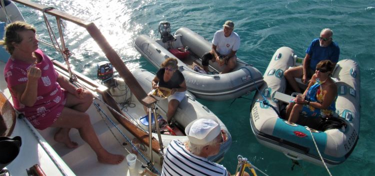 Many people think that living on a boat may be akin to living like a hermit. This is not necessarily true. Cruisers do like to socialize when not practicing hermitage. Think hermit crab: he/she carries his/hers home on his/hers back. A much more apt description of cruisers. Whatever.