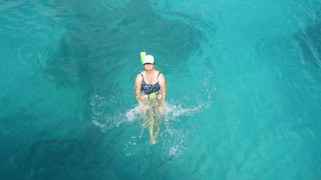 I had to install a new water heater just after the New Year as M&R in exotic places never changes. We rented a car one day to do some serious provisioning in the very large Epicurian supermarket in St. John. Jim and Meryl from Kokomo came along and we filled the trunk to capacity. Upon backing up to unload the trunk at the dinghy dock I came too close to a post and broke the tail-light. Why cars don’t have big fenders like boats I’ll never know. The car rental agency looked and found a replacement from a junk auto yard so the repair only cost $200, half of what the water heater cost. M&R ashore in exotic places!