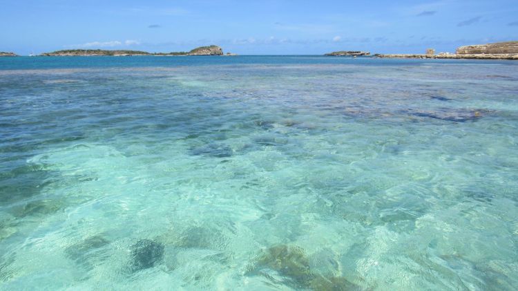 We haven’t been up to Great Bird in a number of years, the last time being when my daughter and son-in-law were aboard for a visit. It’s the most remote end of Antigua, mostly a nature park, with no developments, no beach bars and no services. A good place to “get away from it all”. The only problem is that it is on the north east corner of the island and not protected from the strong trades. Like Nonsuch Bay, it is protected by reefs from ocean swells and has a few small islands for wind protection. In calm winds the area reminds me of the Bahamas and that means shallow banks, reefs, and coral heads. Eyeball navigation is the name of the game but in good sunlight and clear water it is not that difficult. The pictures below look like the Bahamas. The other areas that look similar in the eastern Caribbean would be in the Grenadines. They have more coral reefs, but are like here, offer little protection from strong trade winds.