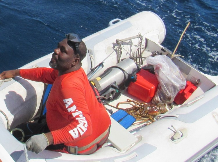 When we anchored, I dove on the hull and only saw one small scratch on the bottom of the keel, so all was good. We also called Julia and Angus answered and apparently got over the reef and back to Julia safely. As you can see in the photo, he caught a massive lobster and I wonder if that dragged him out. In any case, all turned out fine for everyone. Adventure comes when you least expect it, and fortuitous circumstances seems to save many days. A good shot of rum ended our day safely at anchor in Nonsuch Bay. I think I need a lobster dinner.
